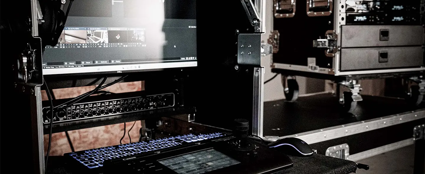 Nos régies multicam s’adaptent à tous vos besoins de captations en direct ou en différé (live streaming, duplex, webinaires, etc…) tandis que nos équipements mobiles s’adaptent parfaitement aux tournages plus traditionnels (film d’entreprise, interview, fond vert, drone, …).