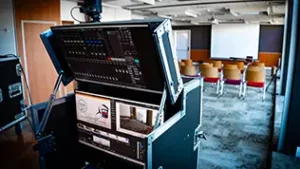 - S’assurer des bonnes connectivités côté internet, diffusion son, diffusion vidéo (sur vidéoprojecteur par exemple) et anticiper la prise en charge ou non de postes supplémentaires comme l’ajout de d’éclairage